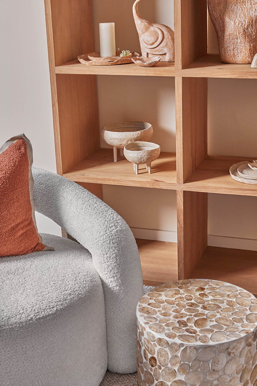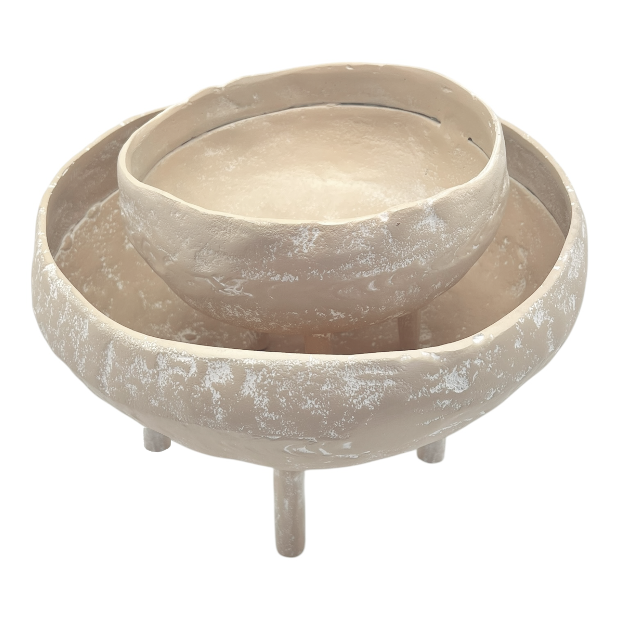 Make a bold statement with the larger Mara Round Bowl with Legs, part of our Crafted Collection. This generously sized decorative bowl features a gently textured surface and four charming legs that elevate its handcrafted design, finished in a soft beige whitewash.