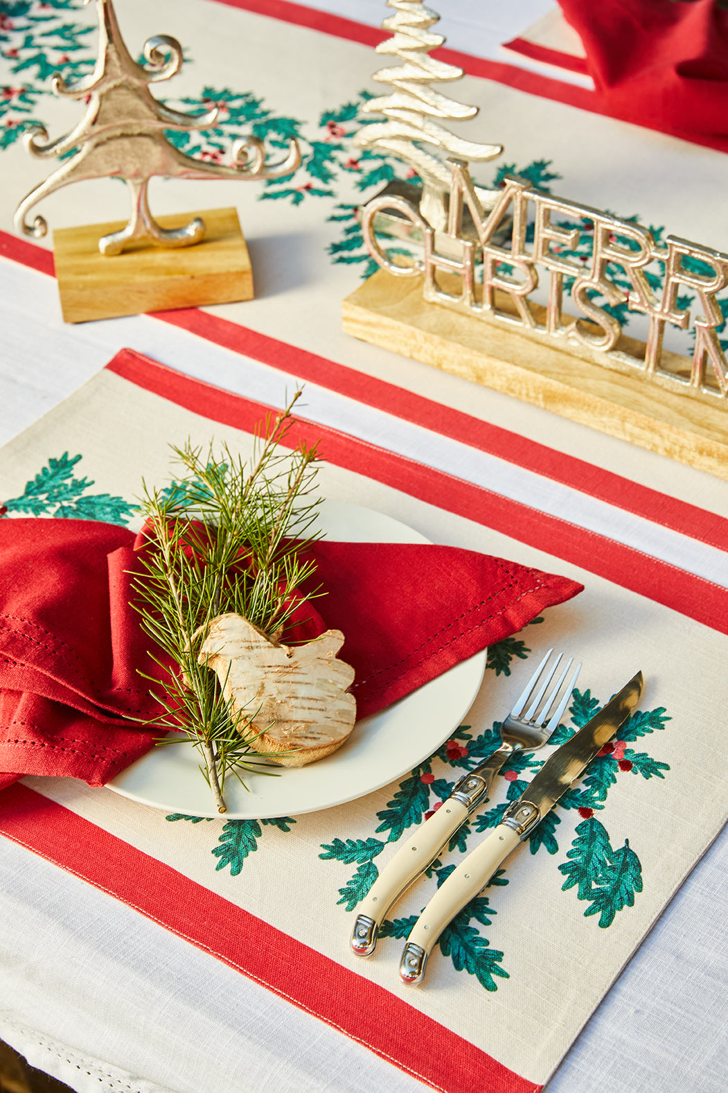 Introducing our Christmas Foliage Collection, inspired by lush greenery and festive berries. The Christmas Foliage Runner brings nature to the table with elegant holly and pine details. Made from 100% cotton, it's the perfect centrepiece for holiday gatherings, pairing beautifully with matching placemats and napkins.