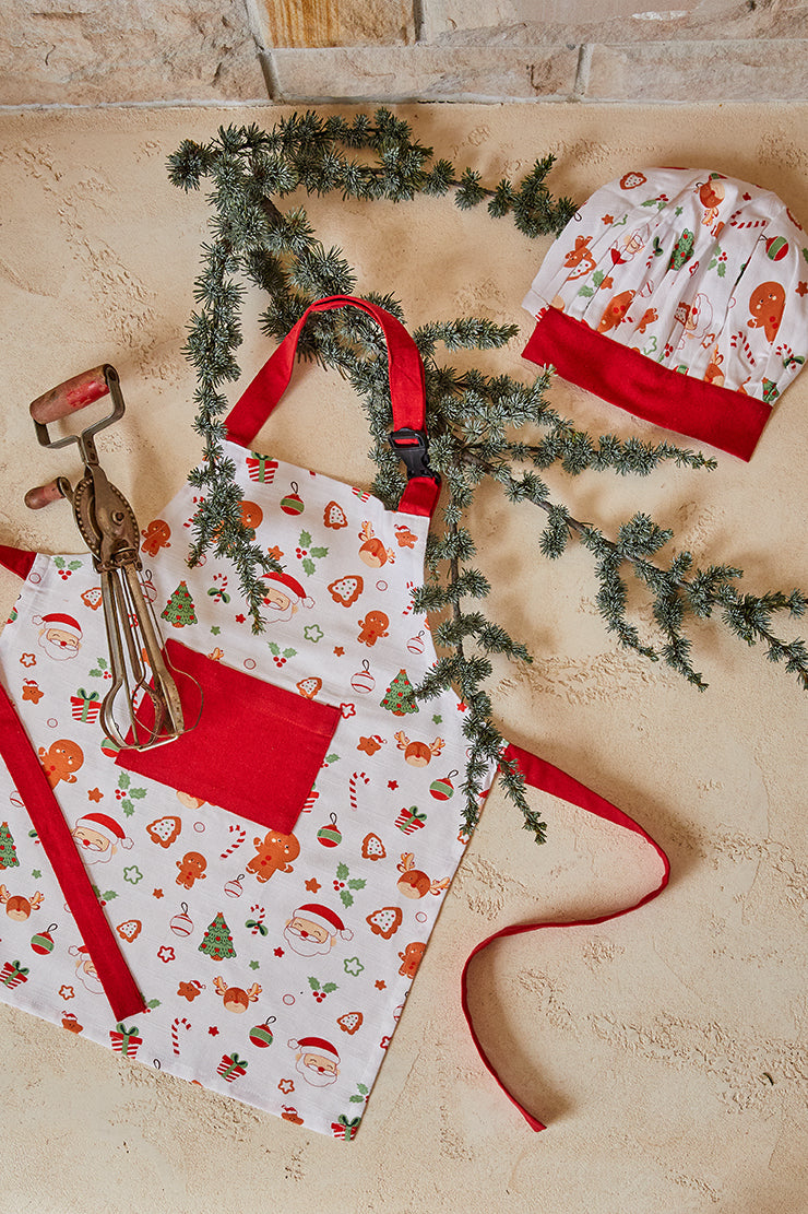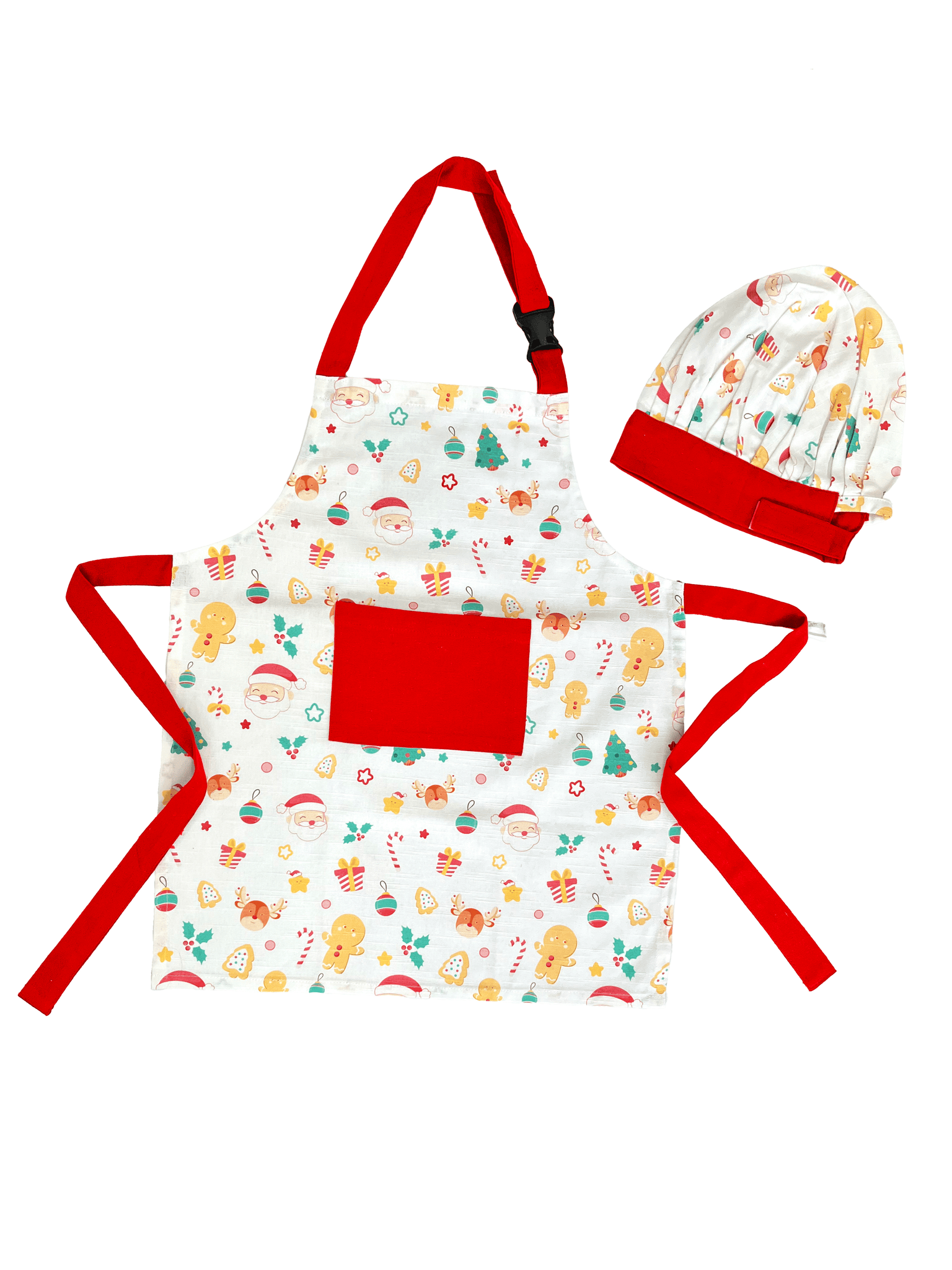 • Load image into Gallery viewer, Jolly Kids Christmas Apron & Cap White Multi