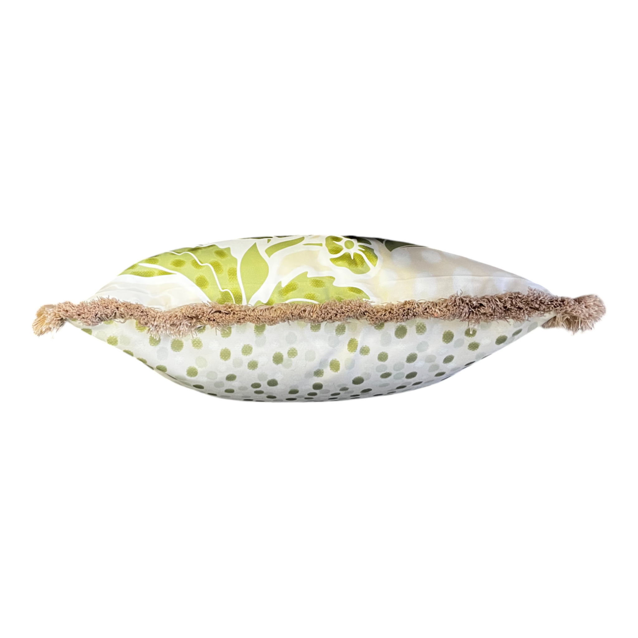 Featuring an elegant olive and beige botanical print complemented by textured jute fringing around the edges, the Renna Outdoor Cushion brings natural sophistication and tactile detail to your outdoor space. Crafted from durable, weather-resistant fabric, it offers both style and comfort for lasting outdoor enjoyment.
