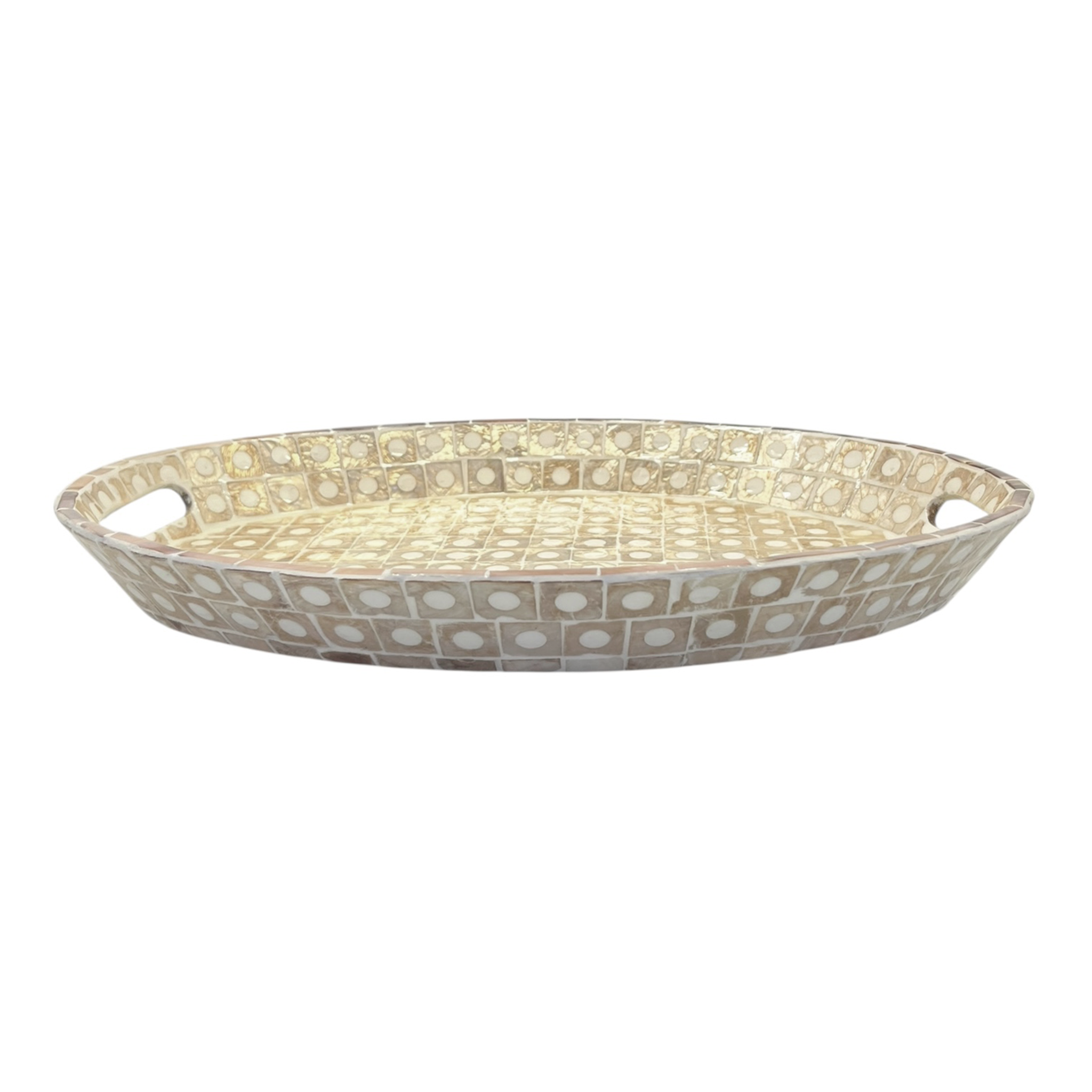 Elodie Pearl Oval Tray with Handles 40x30x4.5cm Natural