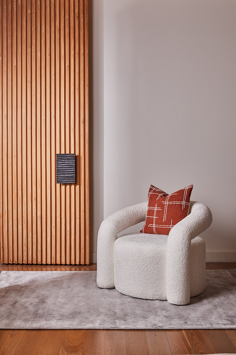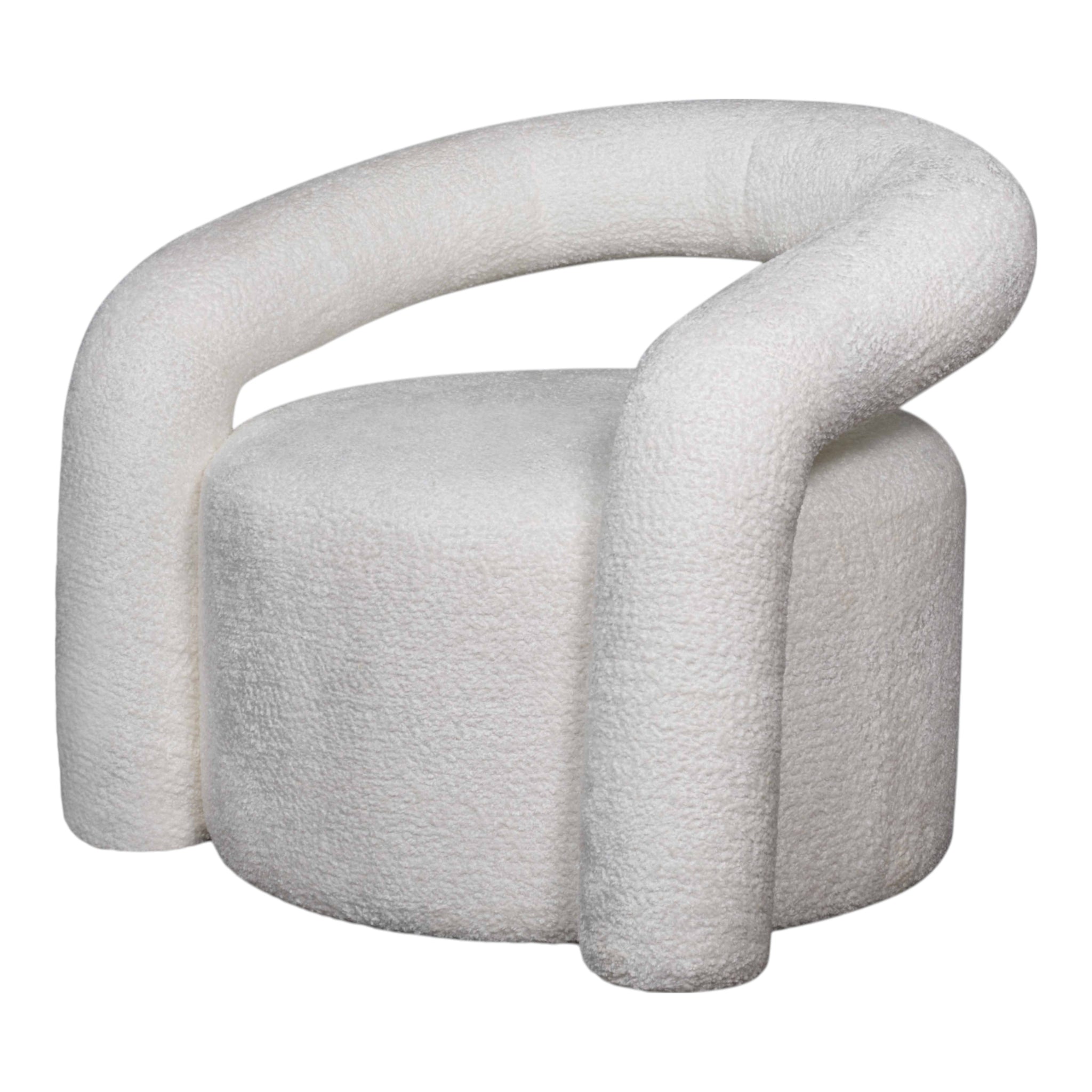 Add sculptural style and comfort to your space with the curved Lumen Boucle Occasional Chair. A masterful juxtaposition of shapes creates a bold yet inviting statement in any room. Available in contemporary tones: ivory and sage green.