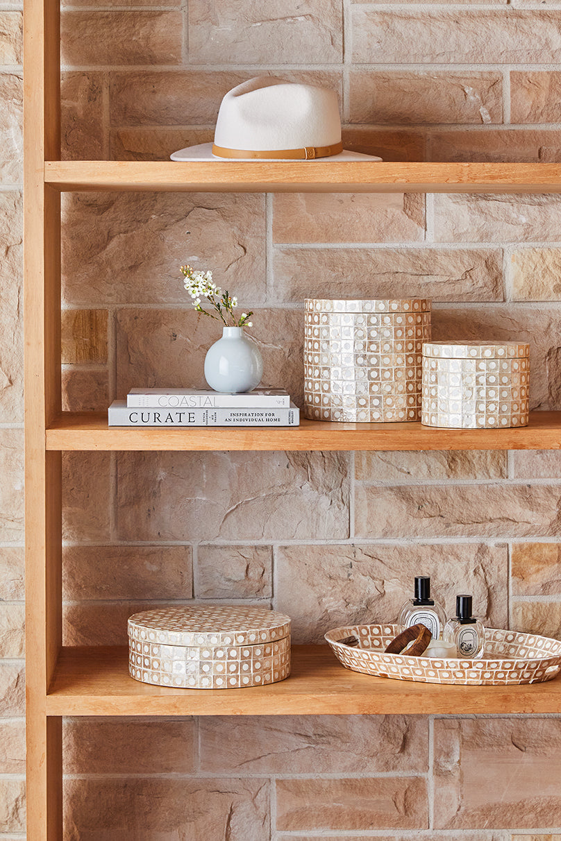 Available in small and large sizes, the Elodie Circular Box is a true statement piece. Crafted from natural bamboo and adorned with intricate mother of pearl inlay, it strikes a perfect balance between organic texture and refined detail. Whether styled as a set or on its own, this box adds a touch of luxury to any room. Both decorative and functional, it’s ideal for storing keepsakes while elevating your space.