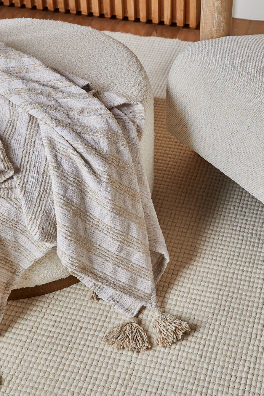 Meadow - The Meadow Throw combines effortless style with a woven line detail that adds depth and an artisanal touch to any space. Finished with tassels, this throw is perfect for draping over a sofa, chair, or outdoor lounge, bringing an elevated, relaxed touch to your home.