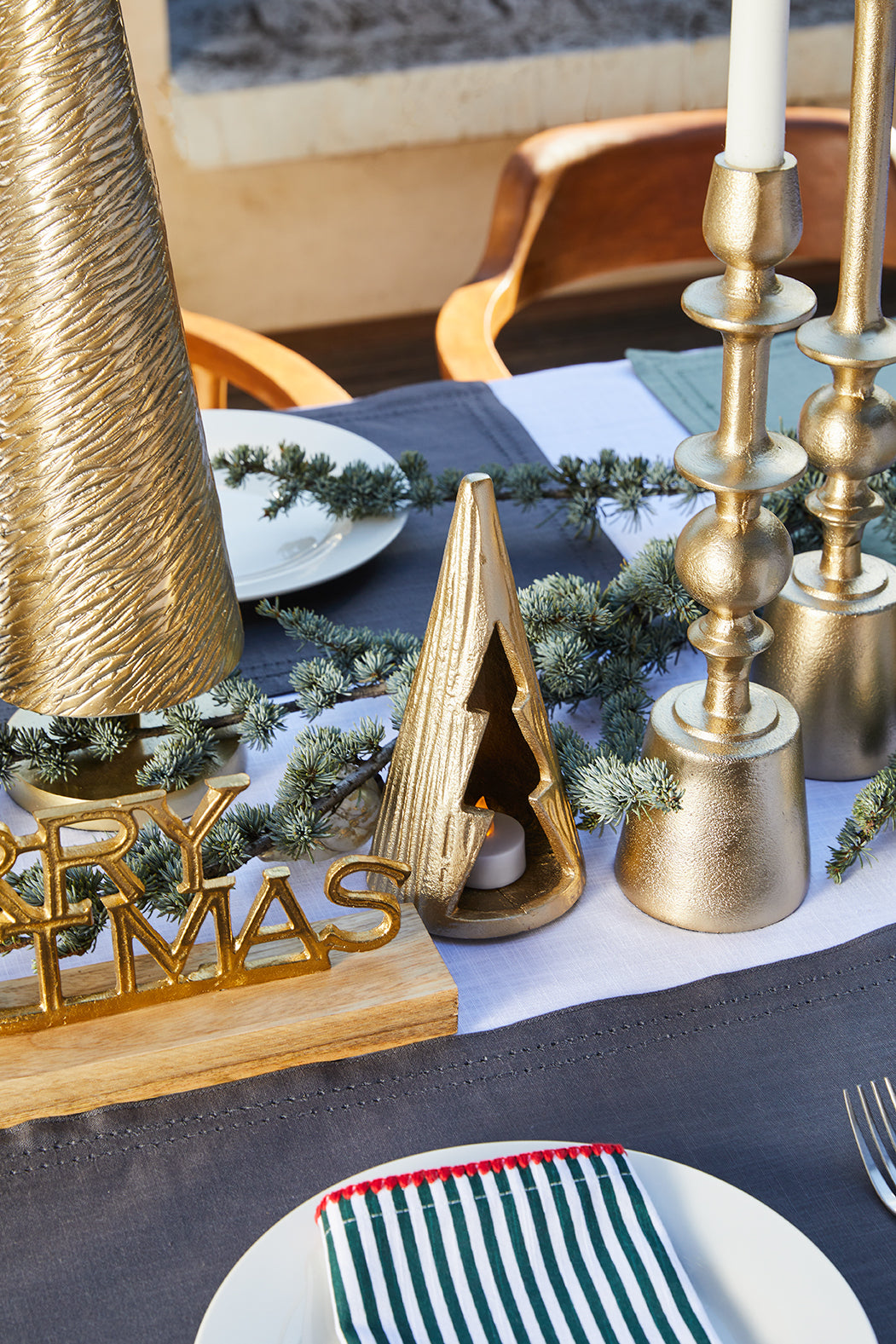 Create cozy corners with the small Noel Candle Stand in gold. Standing 34cm, this holder adds subtle festive glow and style to your holiday décor.